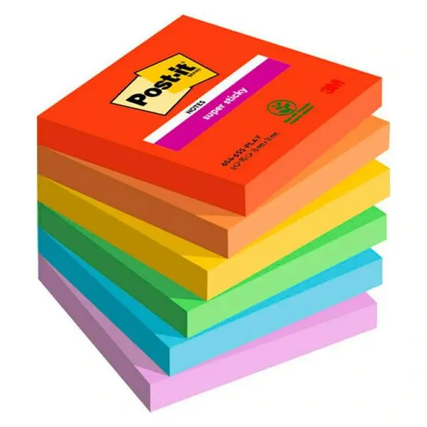 BLOCOS POST IT ADERENTES SUPER STICKY 654-6SS-PLAY 76×76 PACK 6 CORES VIVAS 166187