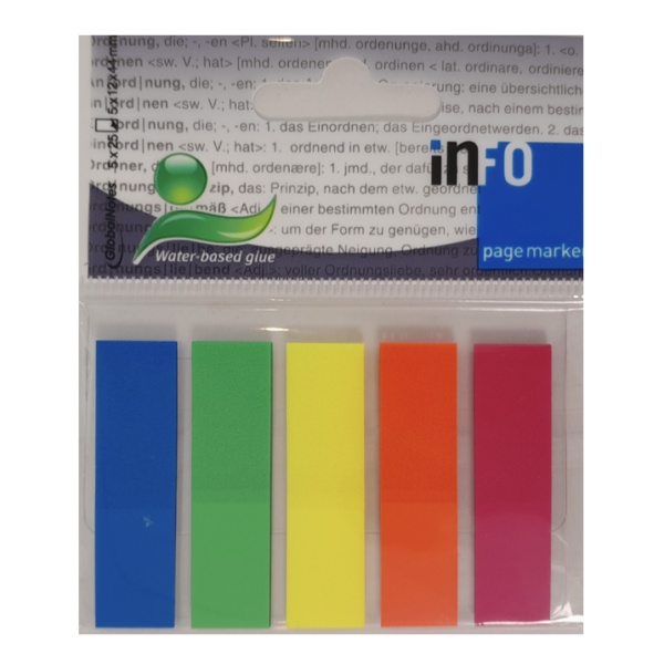 Bloco de notas adesivas no topo, translúcidas e removíveis.