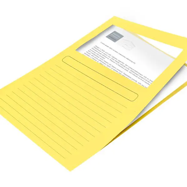 Capa cartolina de 120gr com janela transparente.
