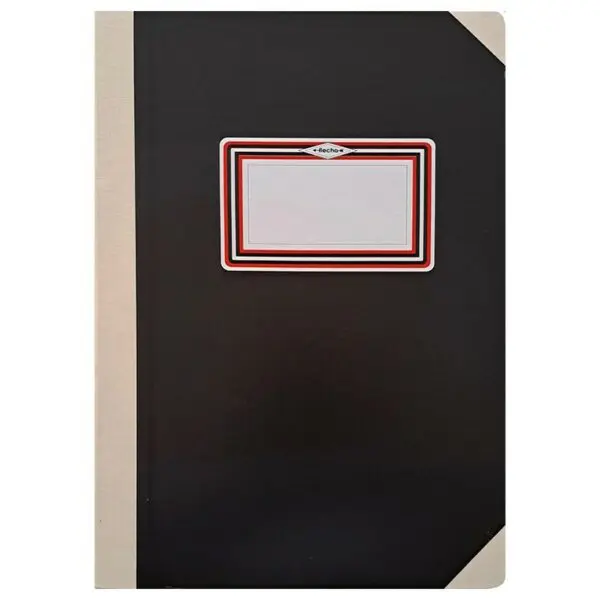 Capa rígida, com 25 folhas cosidas de 100gr.
