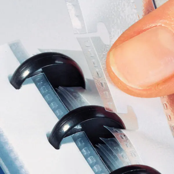 Contém 40 bolsas de 75 microns removíveis, 5 separadores coloridos removíveis e um envelope interior para guardar documentos.