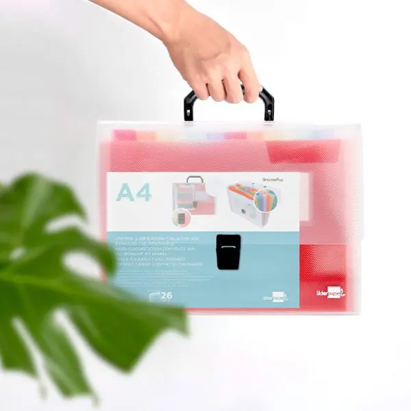 Contém 40 bolsas de 75 microns removíveis, 5 separadores coloridos removíveis e um envelope interior para guardar documentos.
