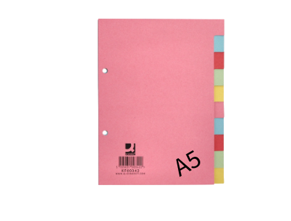 Conjunto de 12 separadores A4 fabricados em cartão de cores pastel.